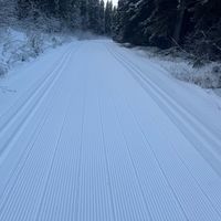 About minus 7 and sunny up on Morice mtn if you want out of the valley fog. Slow going with grooming due to down trees frozen. It's worth it however as conditions will be excellent. Opened up up hill both ways. More grooming Friday and Saturday. Stepping off the packed trail to clear blowdown had me sinking up over my knees.