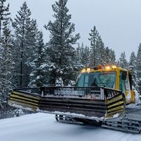 The big machine is back! Thanks to many hard working volunteers who graded and brushed the trails this summer we are able to groom on minimal snow. Enjoy some great skiing!